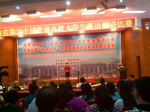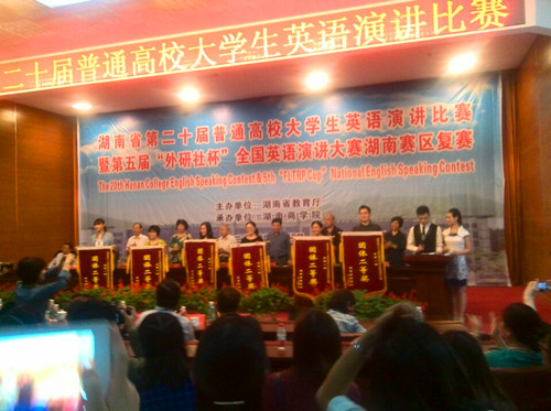 在2014年10月18日湖南商学院举行的“湖南省第二十届普通高校大学生英语演讲比赛暨第五届外研社杯全国英语演讲大赛湖南赛区复赛”中,mk体育官网2012级环境艺术班王怡妮同学喜获个人一等奖。